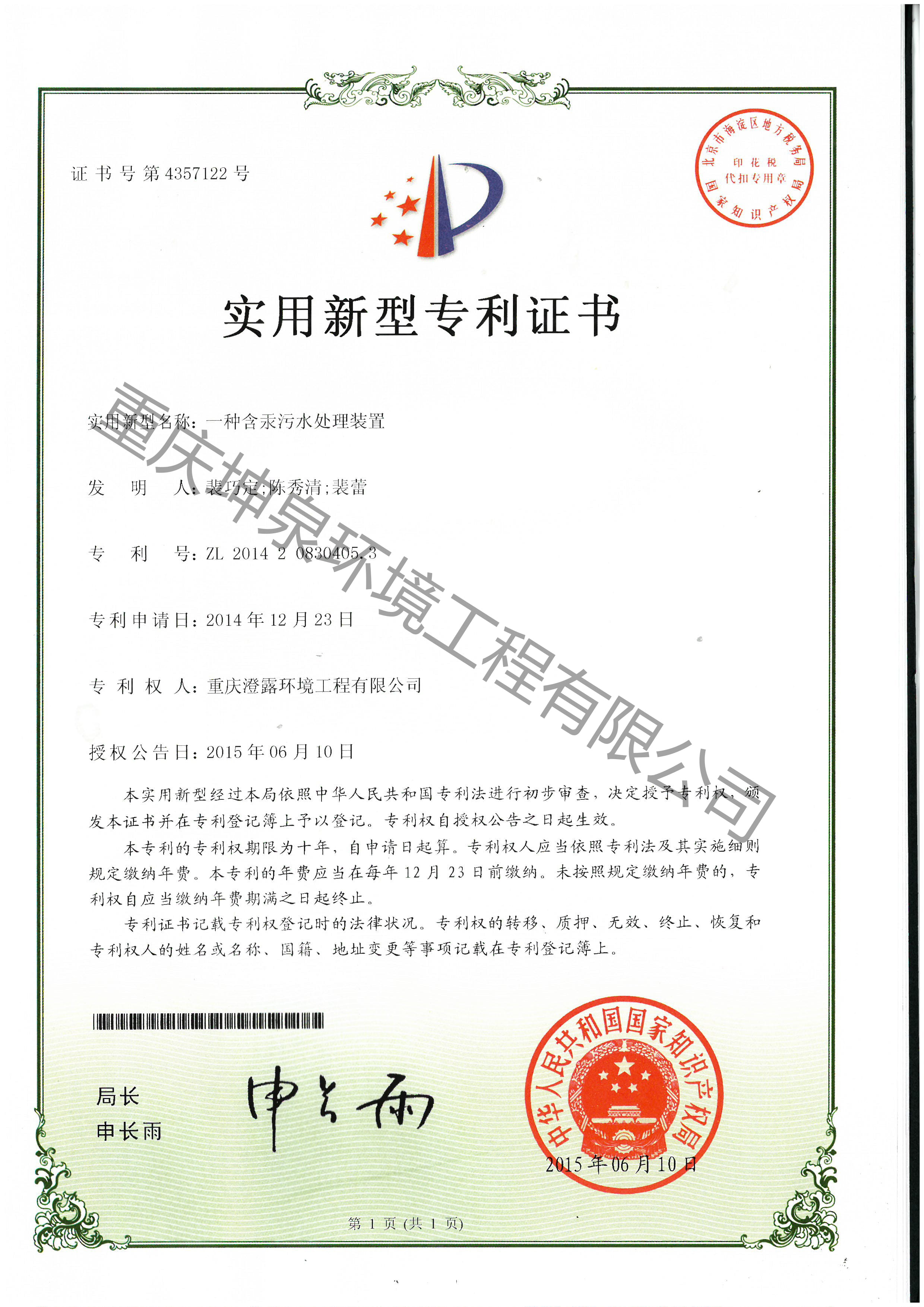 一种含汞污水处理装置