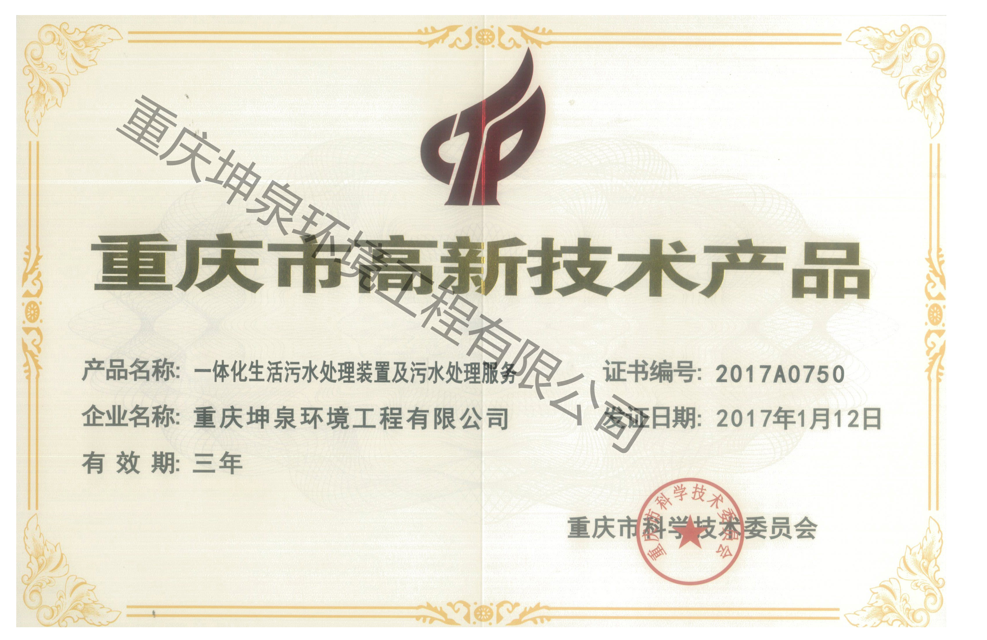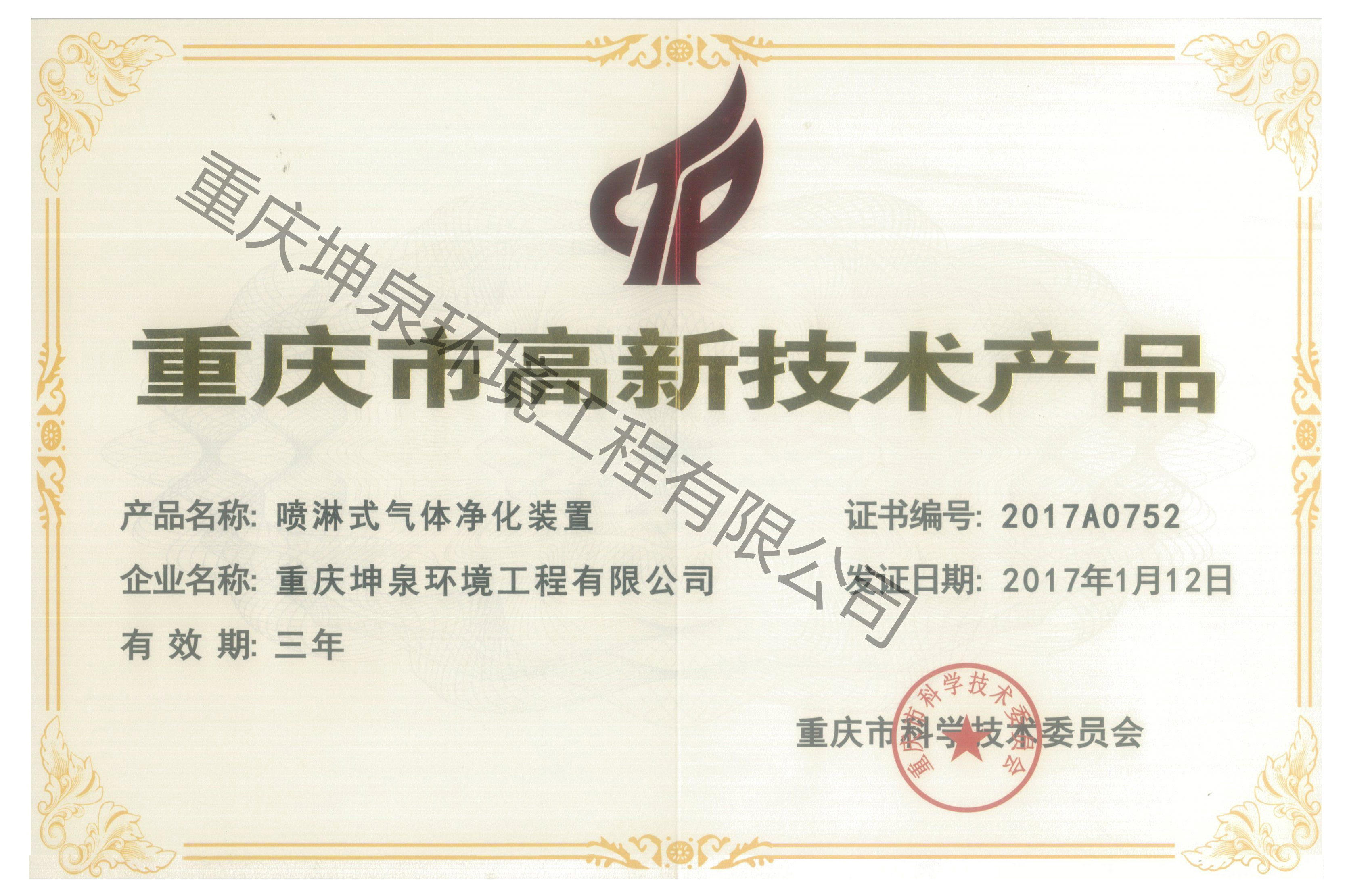 高新技术产品证书